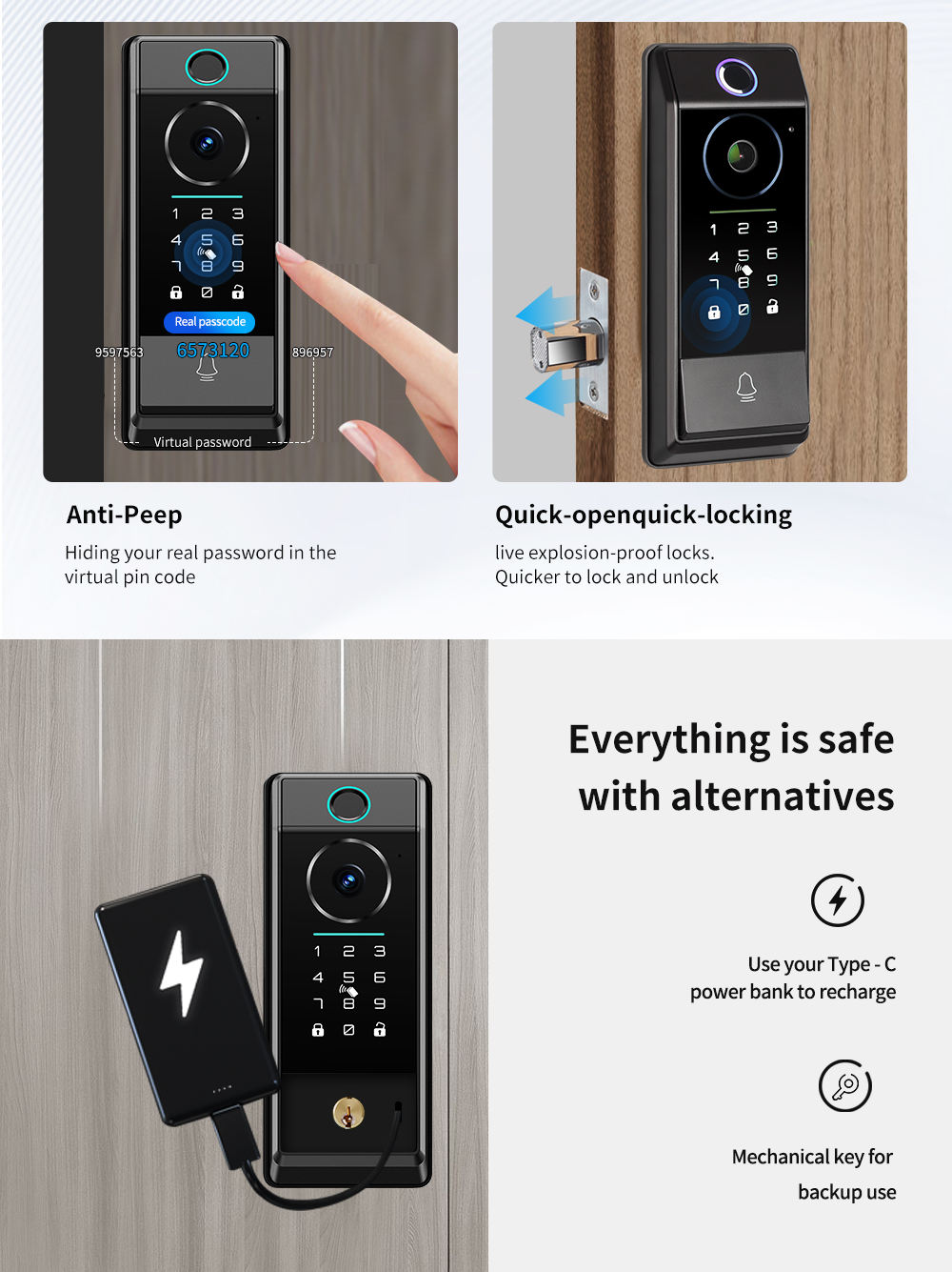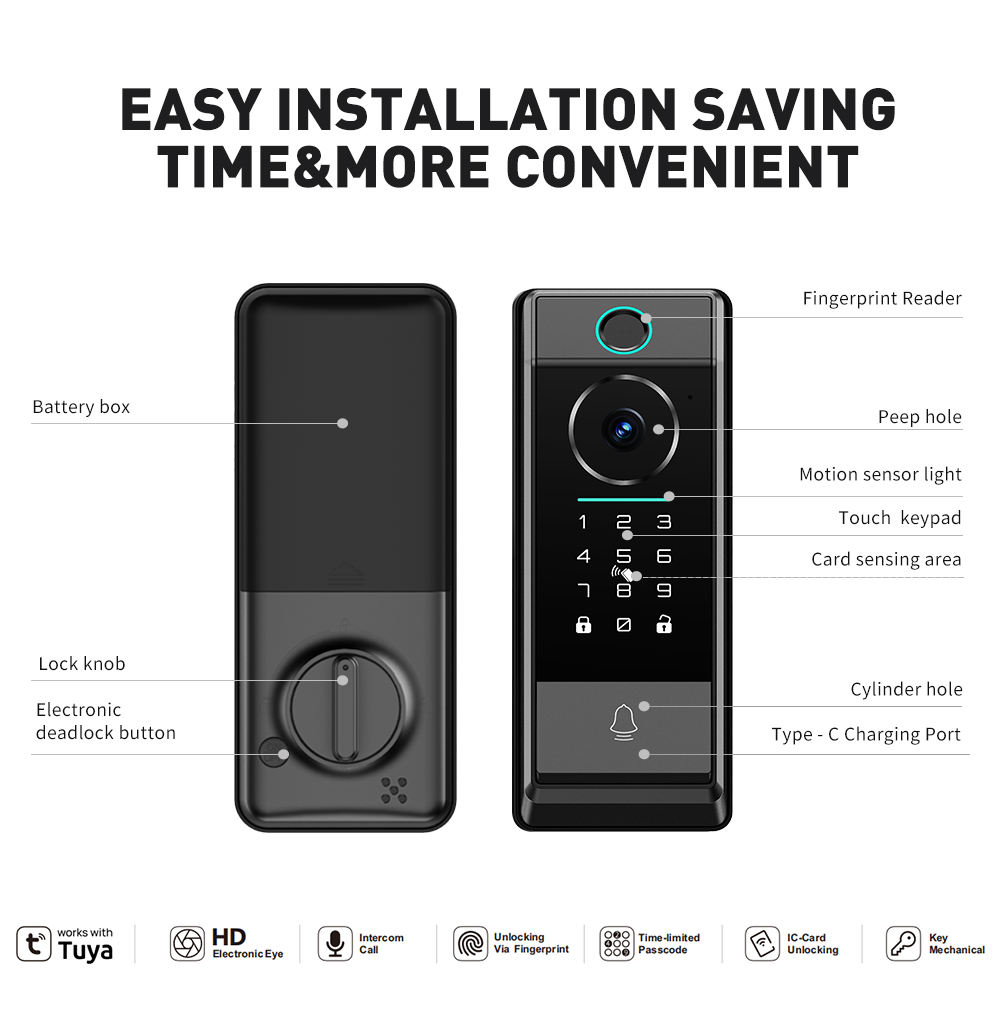 Waterproof Tuya smart lock with camera smart lock door matter
